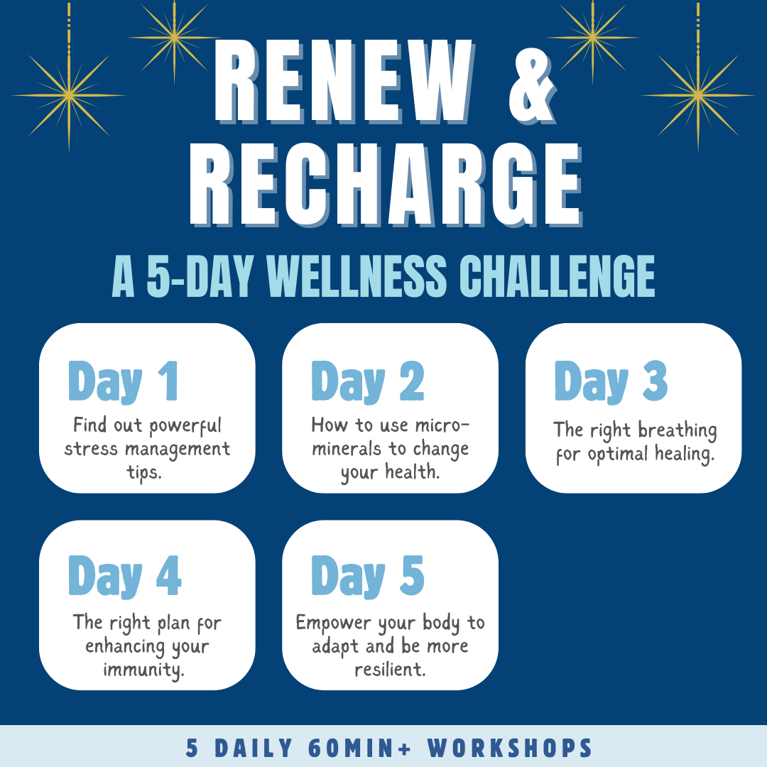Introducing the Renew & Recharge Wellness Challenge – a practical and simple, step-by-step program to help you tap into your body's innate healing potential and create lasting improvements in your health.